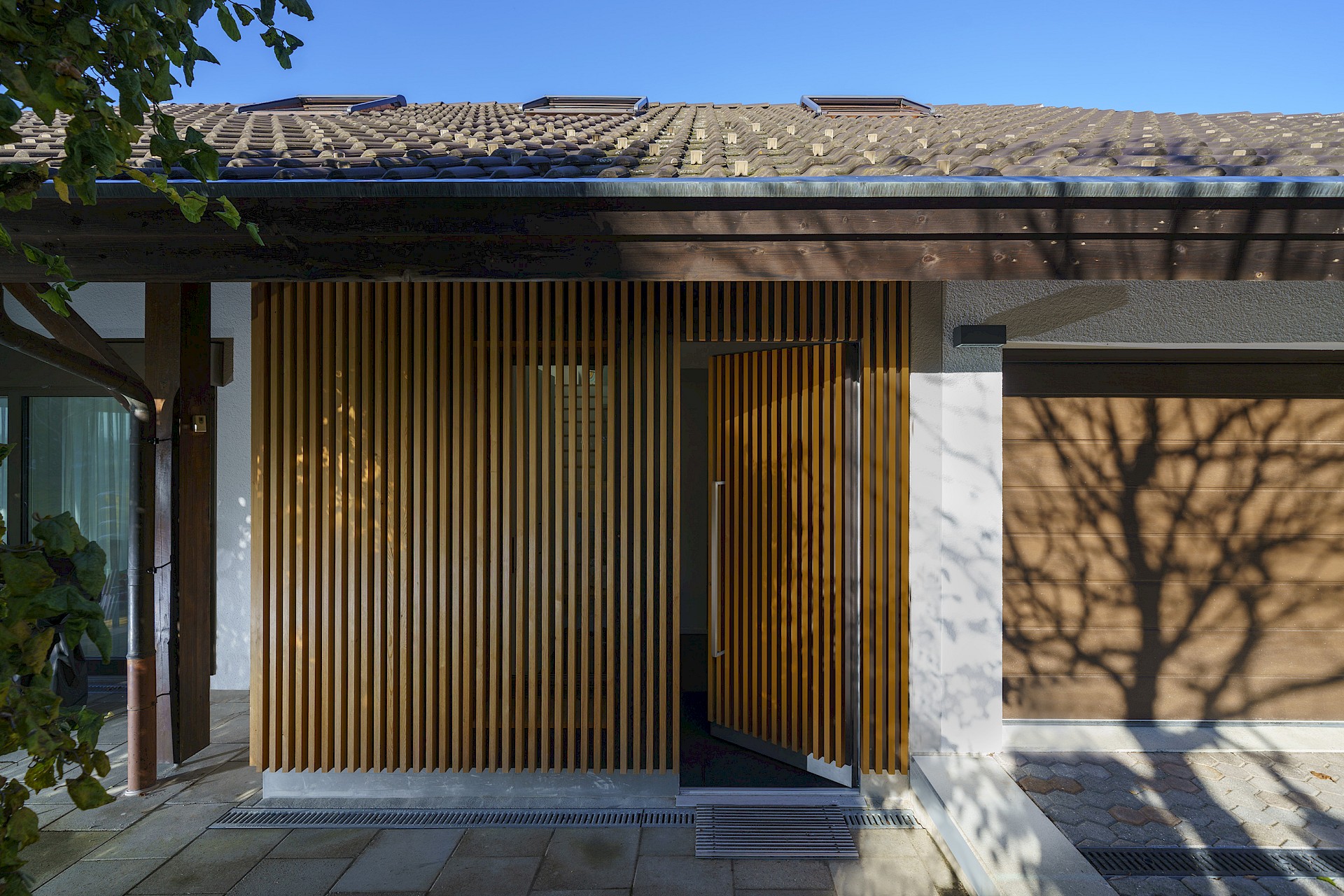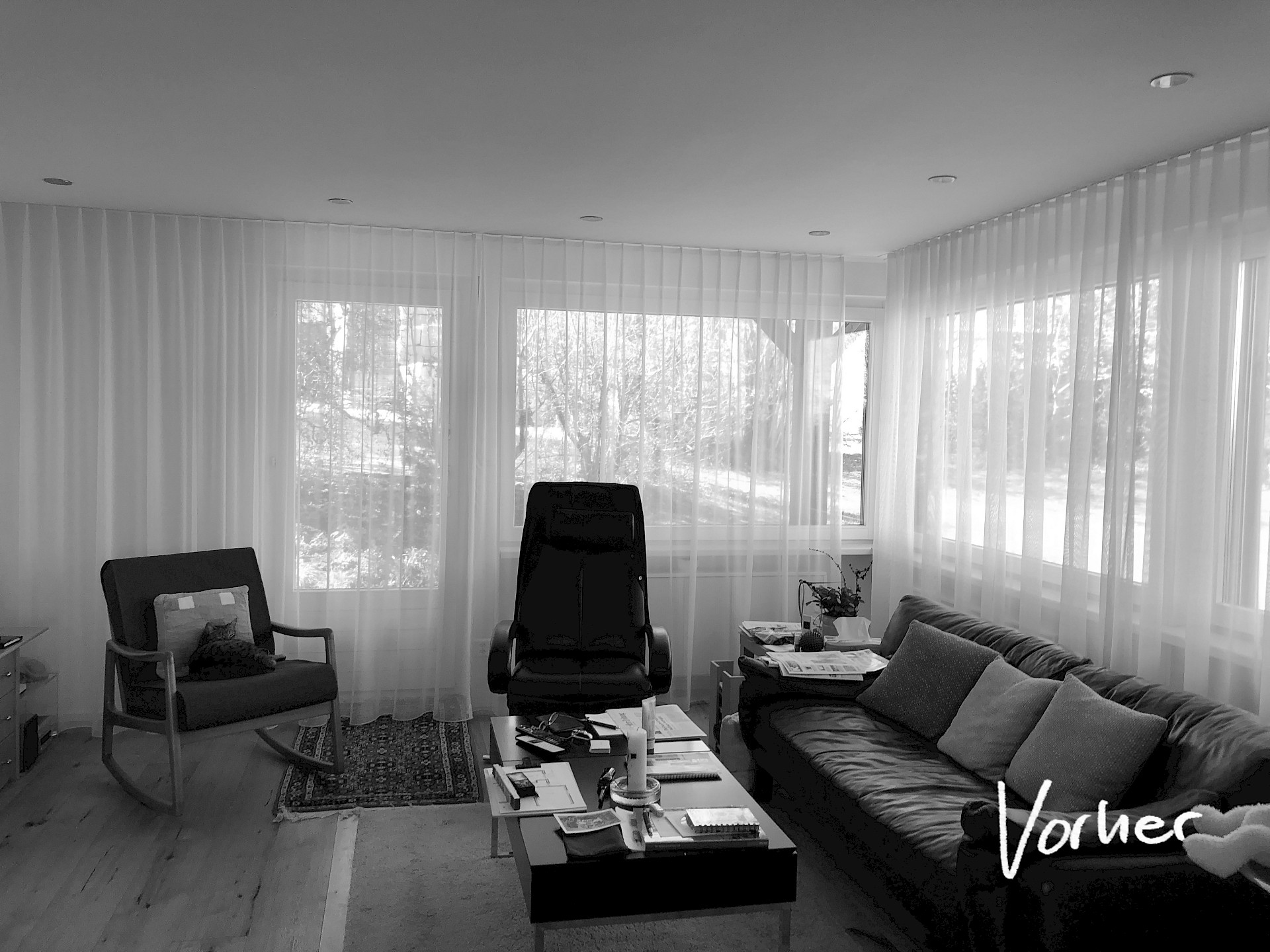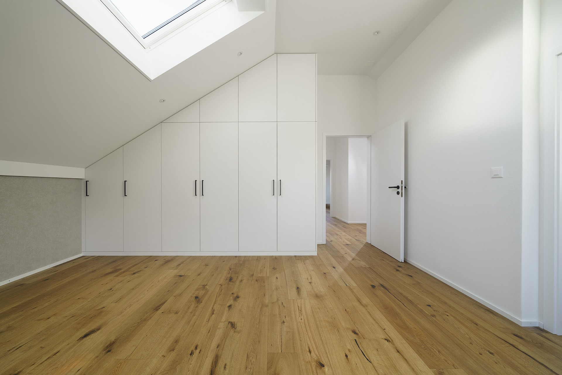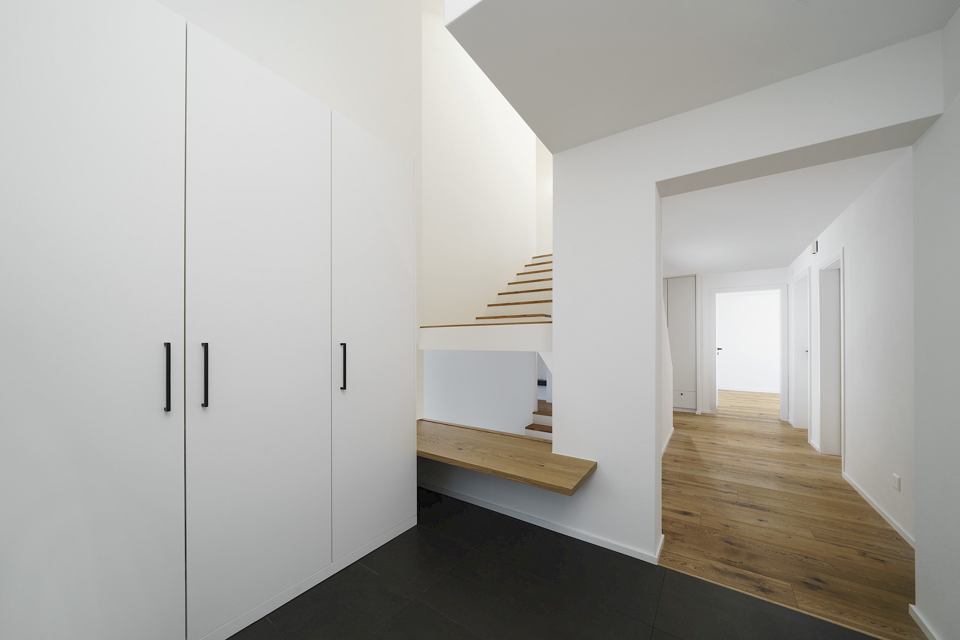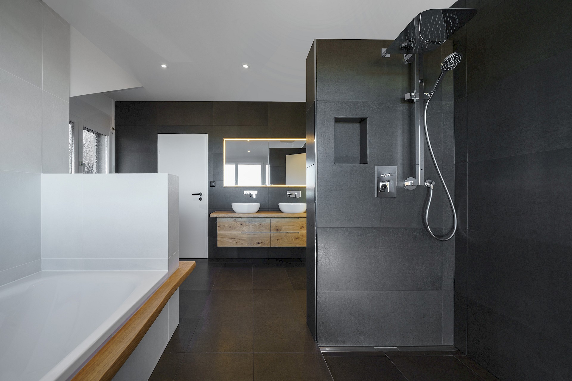 Durch einen Generationenwechsel änderten sich die Bedürfnisse an dieses in den achtziger Jahren erbaute Einfamilienhaus. Der Eingangsbereich wurde vergrössert und mit einer zeitgemässen Holzschalung versehen, hinter dieser sich fast unscheinbar ein Fenster und eine Türe versteckt. Auch sonst hat sich durch den Umbau an der Fassade einiges geändert: Eine Dachgaube vergrössert das Dachgeschoss mit Zimmer und Bad, zwei Dachflächenfenster erhellen zwei Schlafzimmer, ein Raumeck im Esszimmer wurde entfernt und – wie auch im Wohnzimmer – die bestehenden Fenster mit raumhohen Hebeschiebefenster ersetzt. Auch das hölzerne Balkongeländer musste einem schlichten Glasgeländer weichen. Neben den Wand- Decken und Bodenbeläge wurde auch das Bad im Dachgeschoss von Grund auf neu gestaltet. Die alten asbesthaltigen Elektrospeicherkästen wurden im ganzen Haus ausgebaut und durch eine neue Bodenheizung mit einer Erdsonde-Wärmepumpe ersetzt. Der energetischen Sanierung wurde grundsätzlich grosse Bedeutung geschenkt: Das ganze Dach und verschiedene Wandelemente wurden neu gedämmt und Türen zu Kalträumen mit besseren Dämmeigenschaften verbaut. Dadurch konnten Fördergelder vom Gebäudeprogramm beansprucht werden. Die verschiedenen Eingriffe sorgen nun für eine wohnliche Grosszügigkeit in der sich die ganze Familie wie gewünscht entfalten kann.