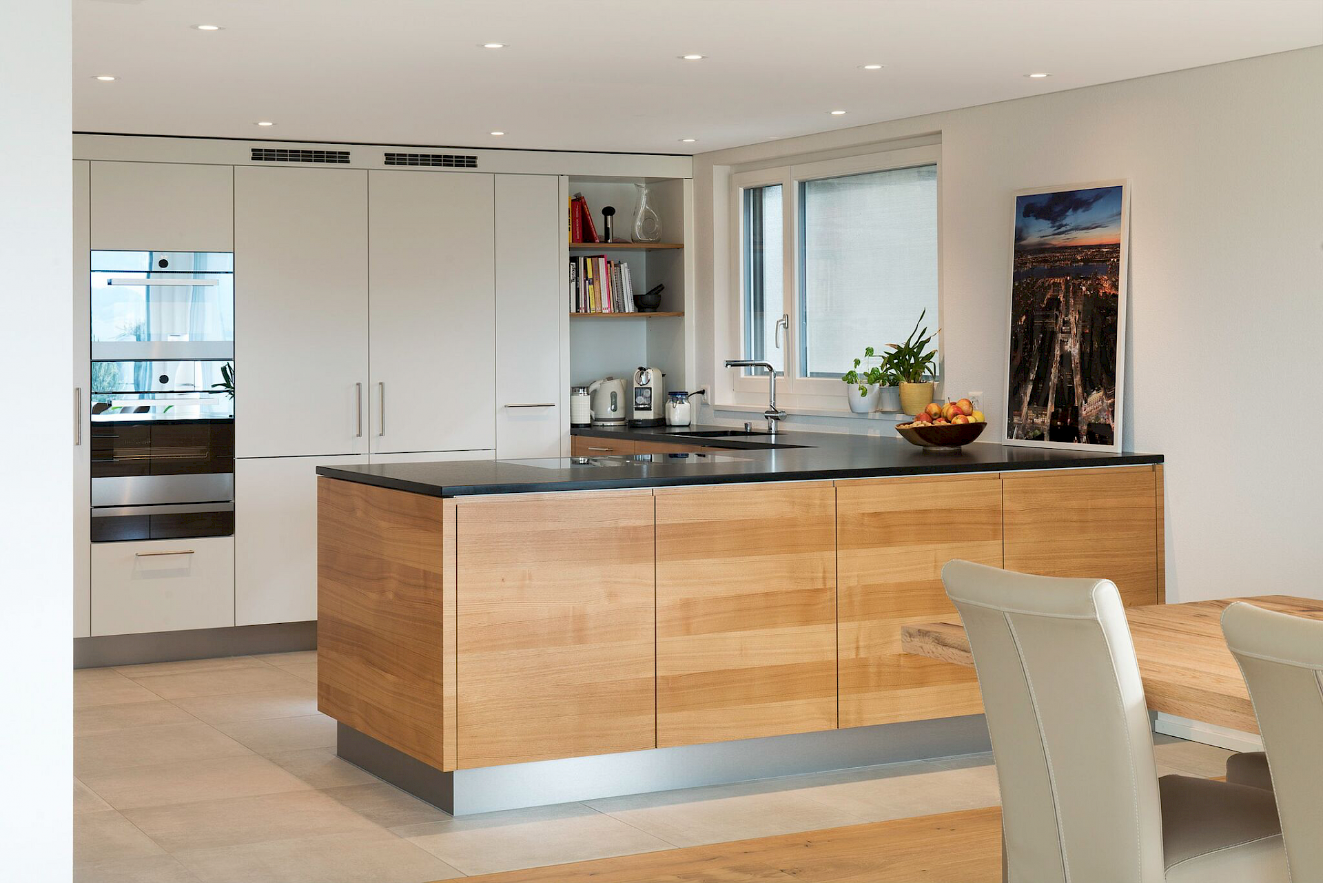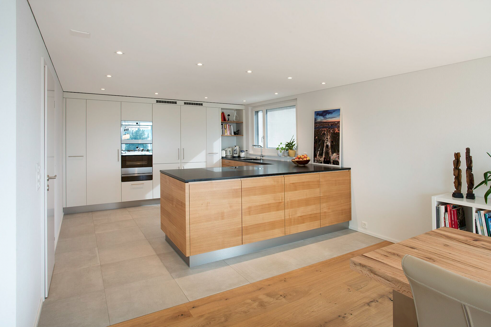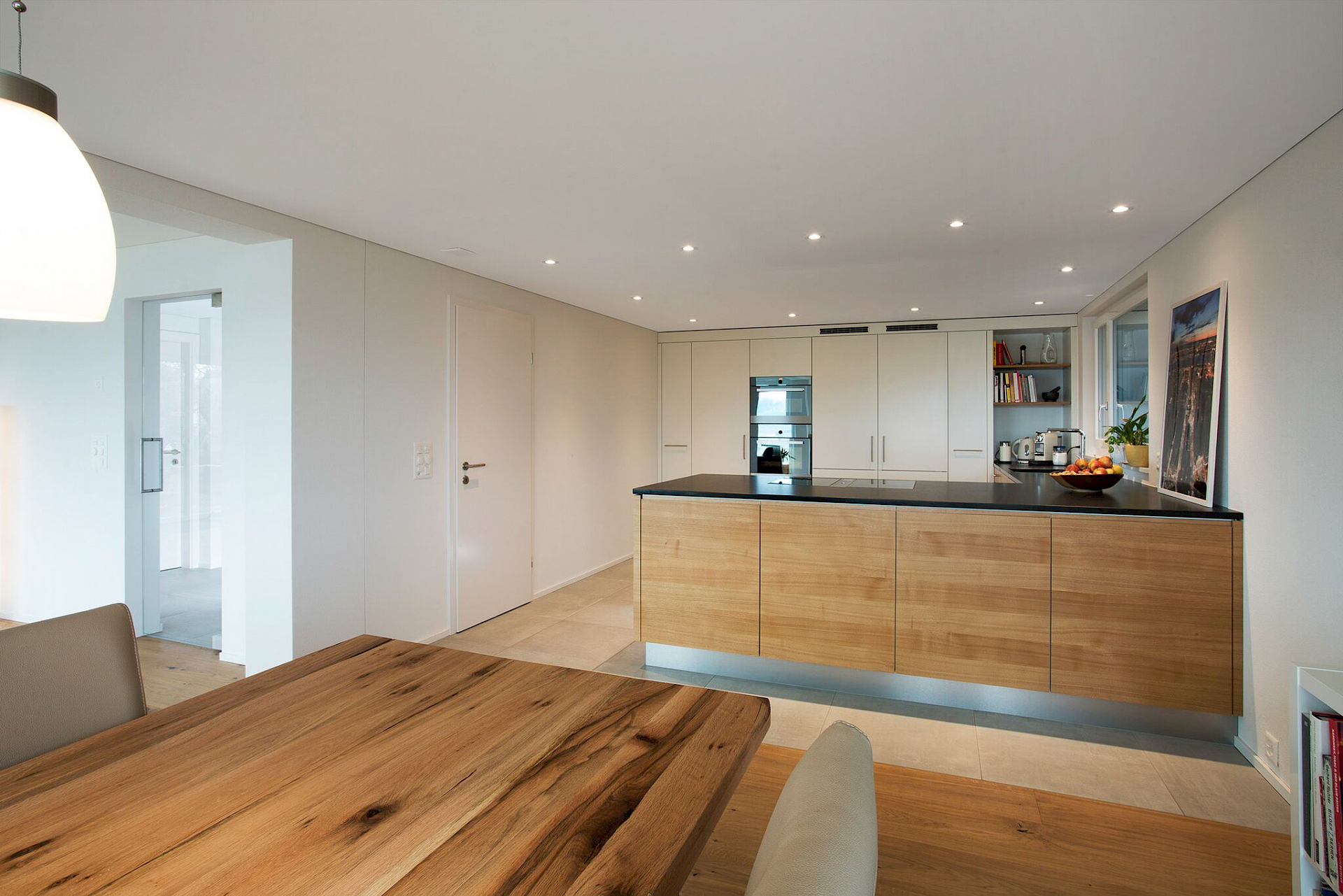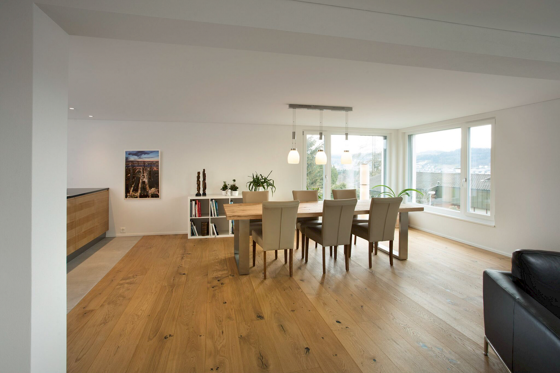 Anschliessend wurde eine neue Raumstruktur erstellt, die mit vielen statischen Massnahmen verbunden waren. Der Umbau sollte in einem offenen, einfachen und modernen Stil ausgeführt werden. Um dem gerecht zu werden, wurde die Südwand des Wohnhauses geöffnet, mit einem grossen Panoramafenster versehen und dadurch der Alpstein ersichtlich gemacht. Von drei Seiten – von der Küche, dem Esstisch und dem Wohnraum – ist so die Sicht auf das markante Gebirge möglich.