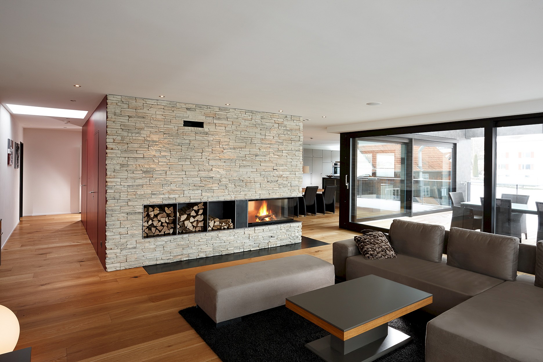 Wohngeschoss mit raffinierter Materialkombination
