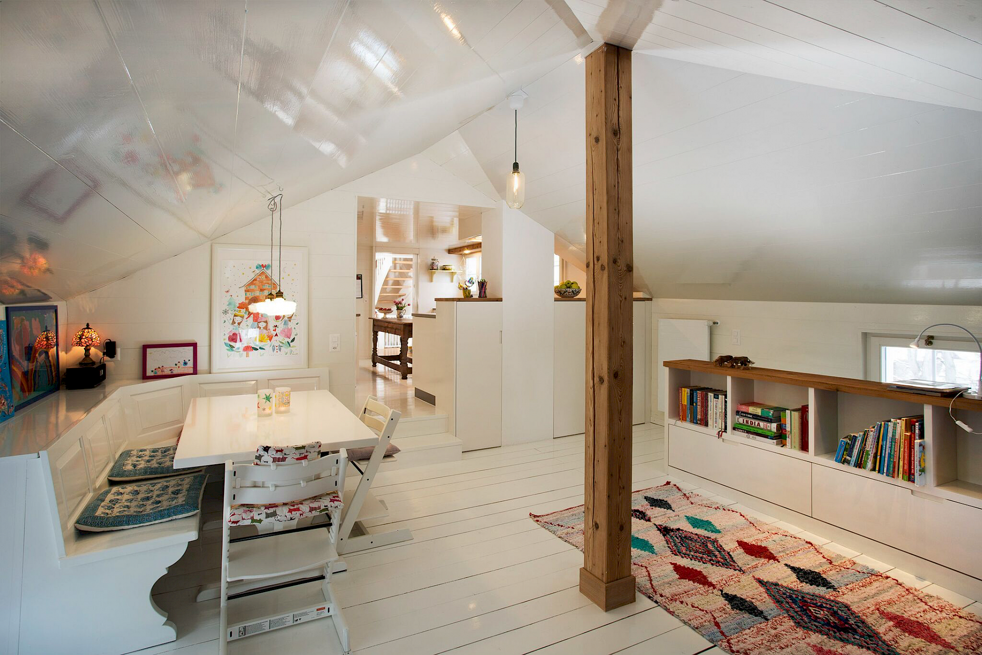 Die beiden neu geschaffenen Räume wurden gedämmt, mit Holztäfer eingekleidet und anschliessend weiss