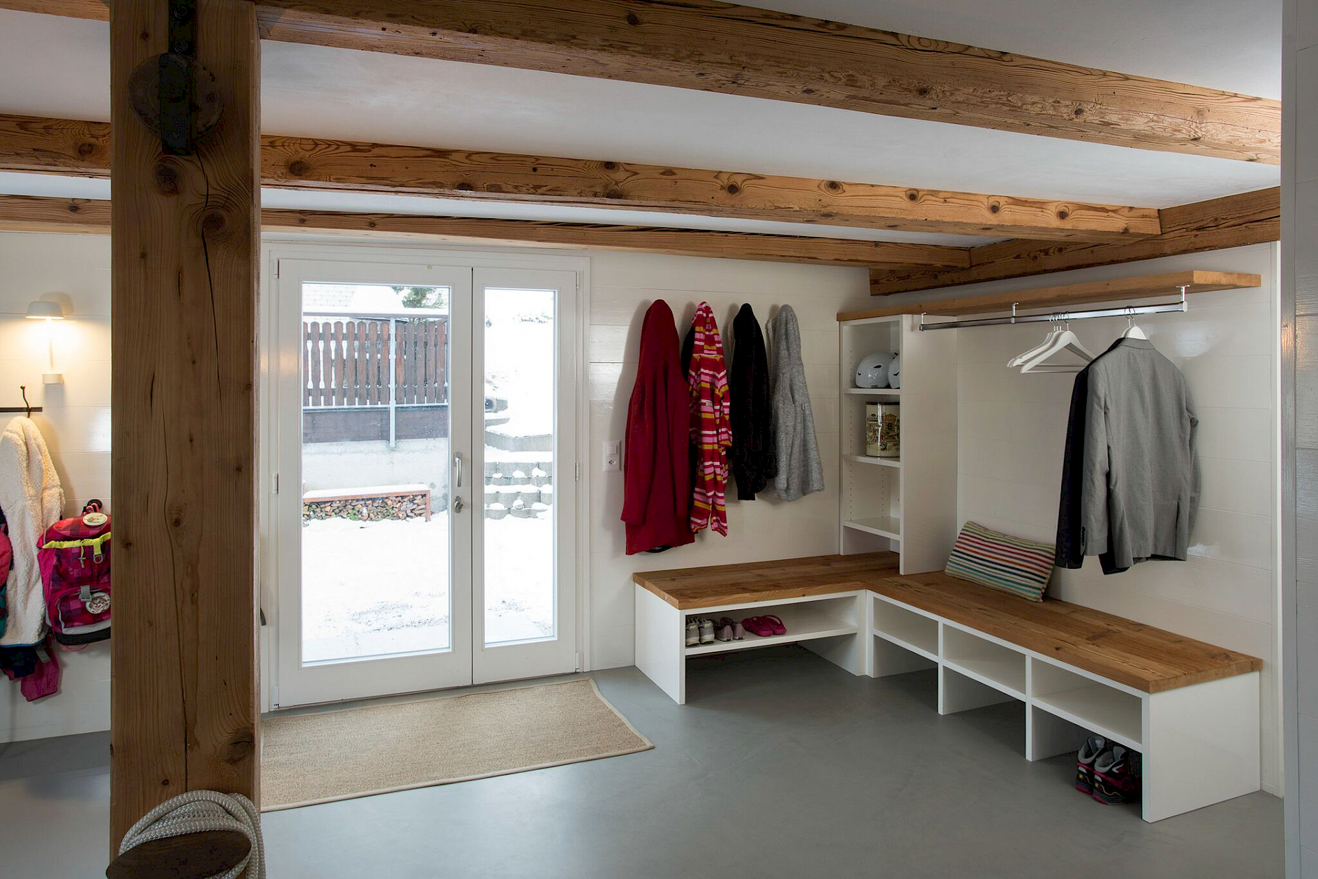 bestehenden Hausteil mit dem neu ausgebauten Schopfteil zu erschliessen, wurde ein neuer Durchbruch erstellt.
