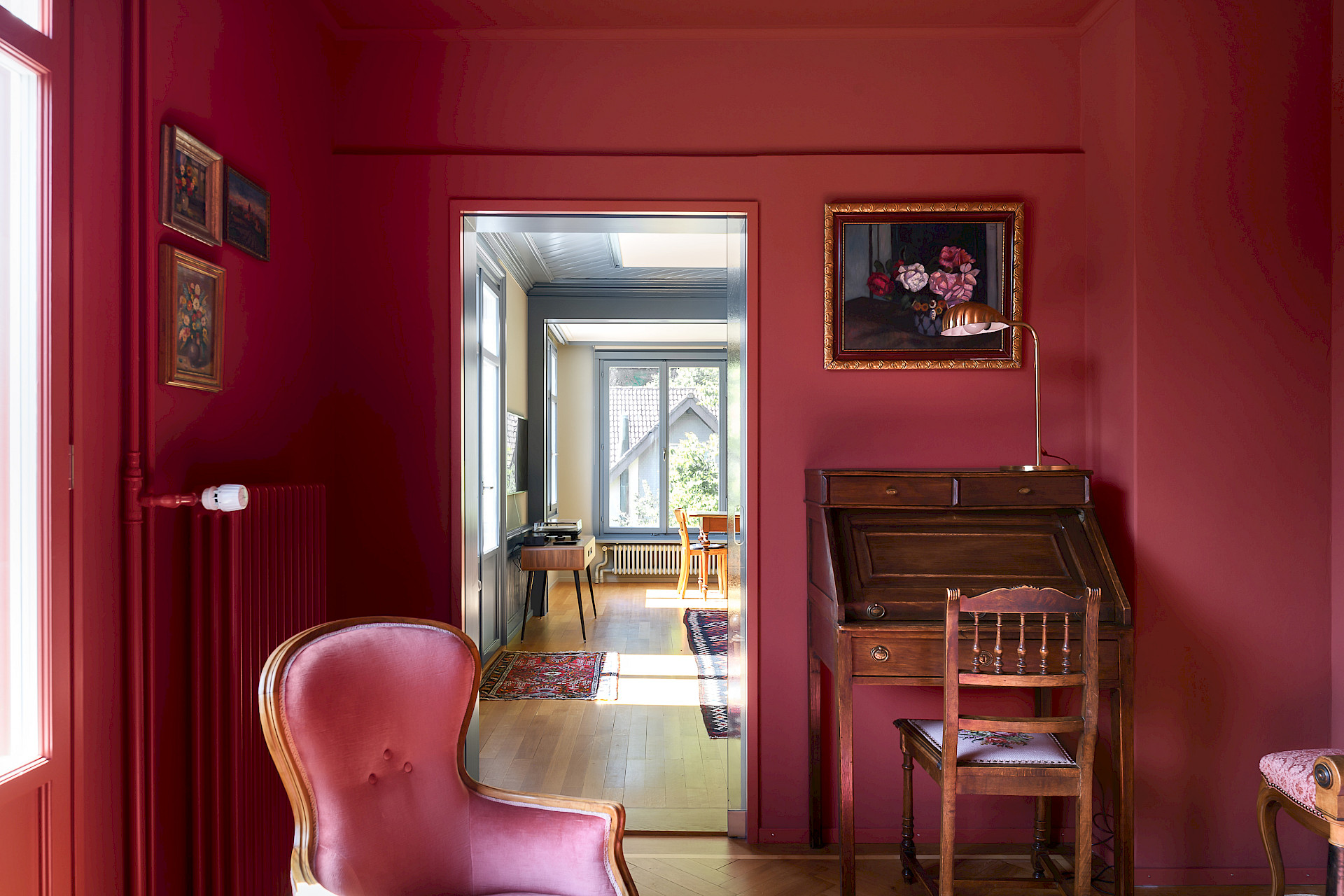 Die «Villa Taeuber» besticht durch ihre markante, purpurrote Holzfassade. Doch auch ihr Inneres hat es in sich: Nun durften wir die Räume durch einen sanften Umbau auffrischen und gekonnt unserer Zeit anpassen. So entstanden in enger Zusammenarbeit mit der Bauherrschaft wunderschöne, charakterstarke Räume, die durch ihre Grosszügigkeit und ein attraktives Farbkonzept bestechen.